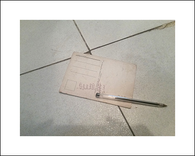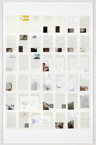 pen on inkjetprints in album / thread stitching